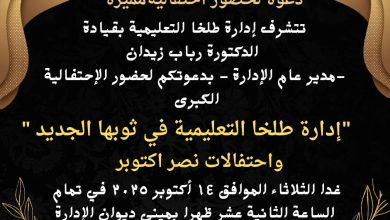 السبت ٤ اكتوبر انطلاقًا من حرص إدارة طلخا التعليمية بقيادة الدكتورة رباب زيدان على توفير…