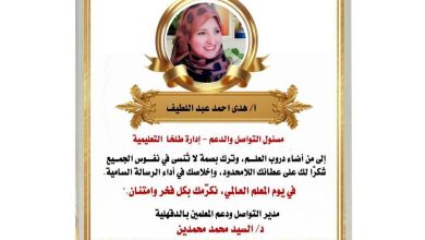 بكل فخر واعتزاز، يسعدني أن أتقدم بأسمى آيات التقدير والعرفان إلى جميع معلمي ومعلمات إدارة طلخا التعليمية بمناسبة اليوم العالمي…