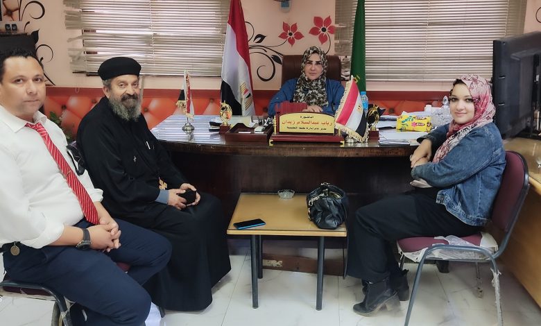 عقدت الدكتورة رباب زيدان، مدير عام الإدارة، صباح اليوم الأربعاء اجتماعًا موسعًا ضم كلًا من القمص لوقا بشري راعي كنيسة مارمرقس بطلخا، والدكتورة أميرة العطار مسؤول الطلبة والصحة المدرسية بالتأمين الصحي.